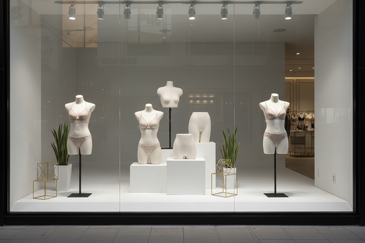 Explore the DE-LIANG Matte White / Rose Gold Female Full Body Mannequin—pure matte white and romantic rose gold, standing and sitting pose options. Designed specifically for lingerie display with perfect...
