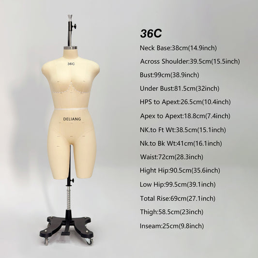 DE-LIANG Professional 36C Female Dress Form with Marking Lines – Fiberglass Tailor Dummy for Draping (Torso Only)