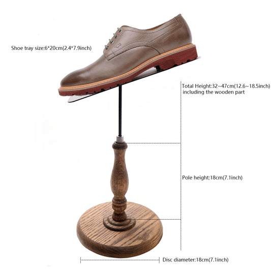 DE-LIANG Adjustable Vintage Shoe Display Stand – Tabletop Bracket with Solid Wood Base for Men’s & Women’s Shoes