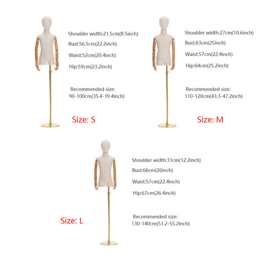 DE-LIANG Luxury Kids Mannequin with Wooden Arms, Canvas Fabric SML size Child Half Body Dress Form Model for Cloth Display, Bamboo Linen