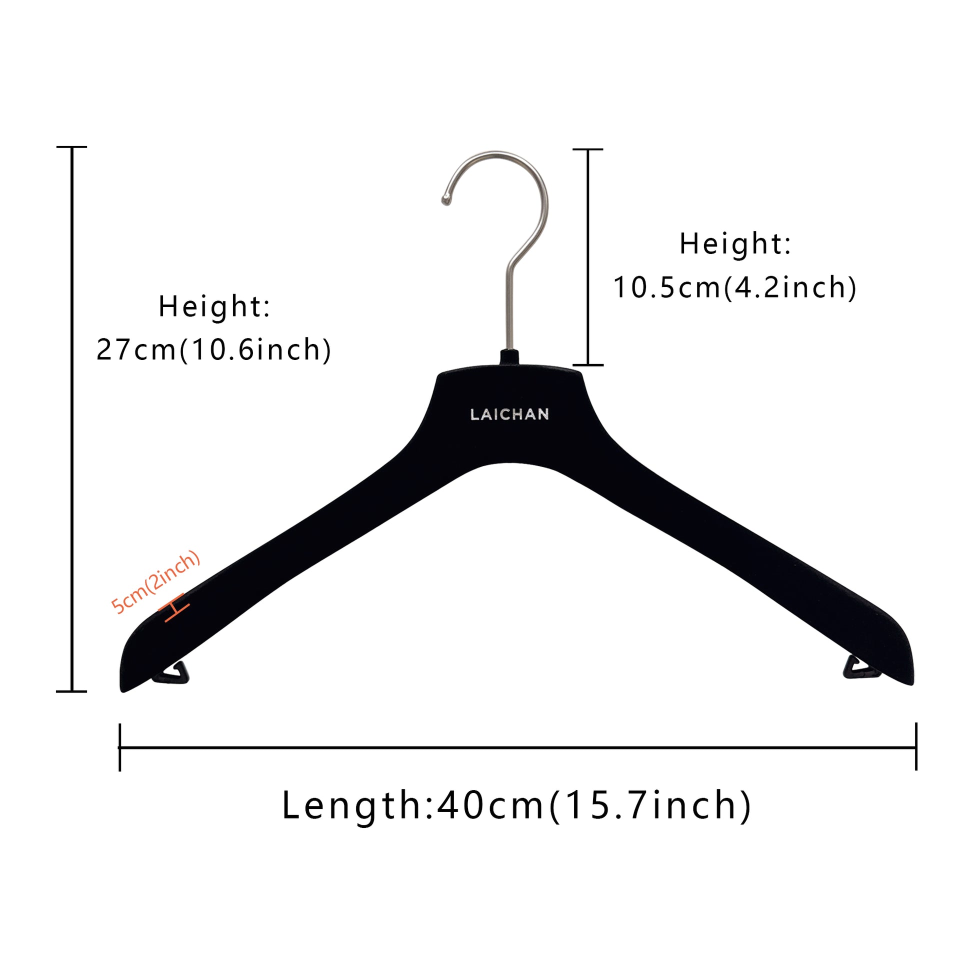 Enhance your clothing displays with our luxury velvet hangers. Specially designed for high-end fashion boutiques and clothing stores, these hangers are both stylish and functional. Crafted with a plastic core and coated with black flocking velvet, they provide a soft, non-slip surface, perfect for showcasing coats, dresses, and pants.