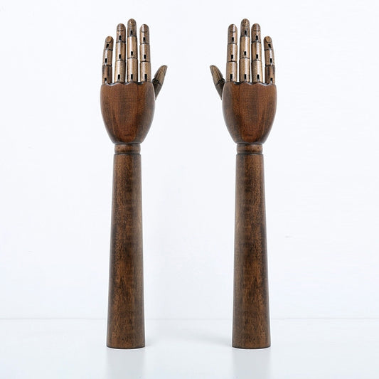Fashion Vintage Brown Wooden Mannequin Hand,Right and Left Flexible Hands Display Rack, Gloves Ring Watch Glasses Jewelry Store Display Hand