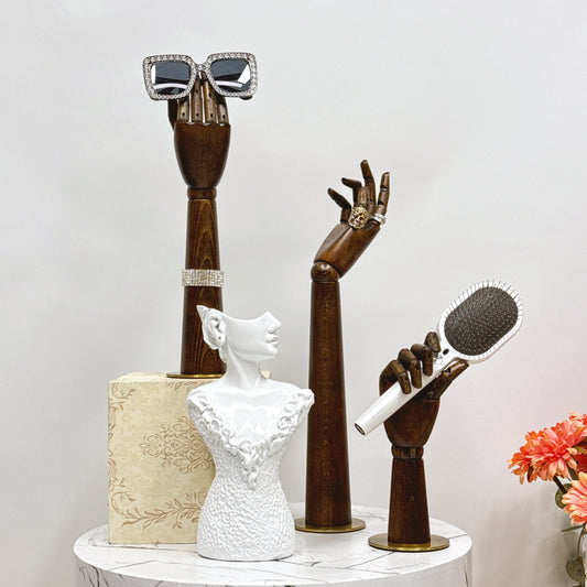 DELIANG Wooden Hand Jewelry Display – Movable Palm Model Prop for Boutique & Window Decor