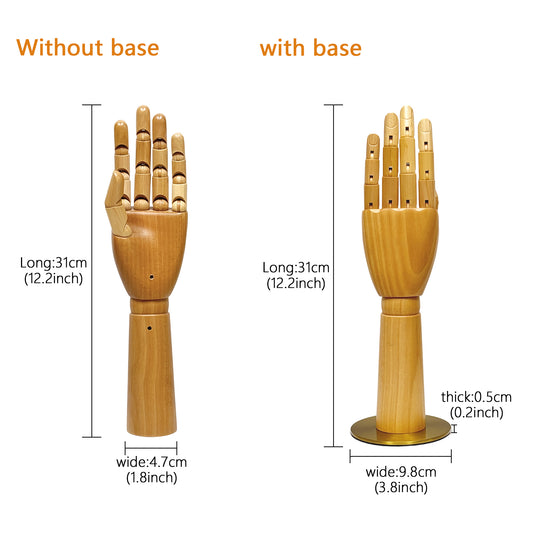 New Wooden Hands Mannequin,Multifunction Female Hand for bag jewelry sunglasses necklace hat display, Raw Beech Wood Color with/without Base