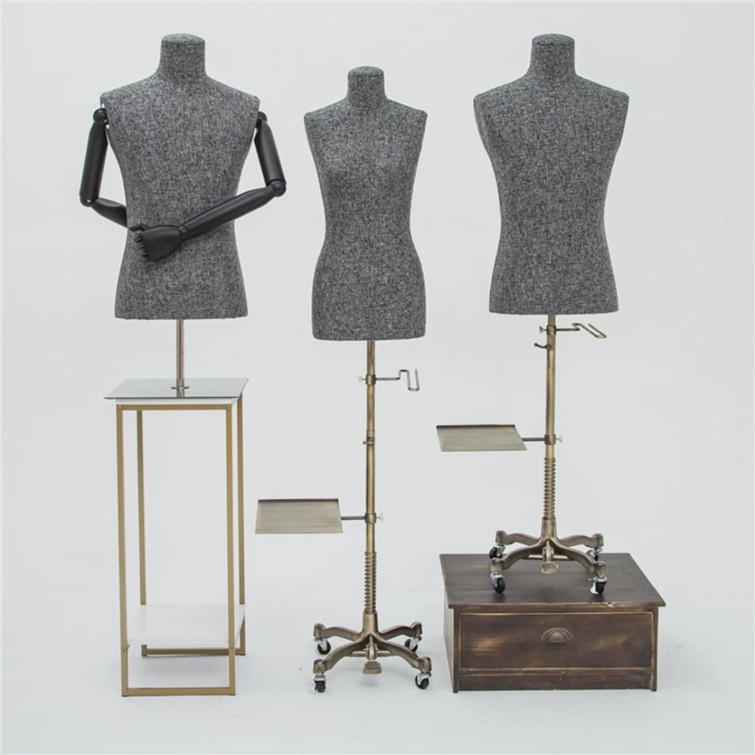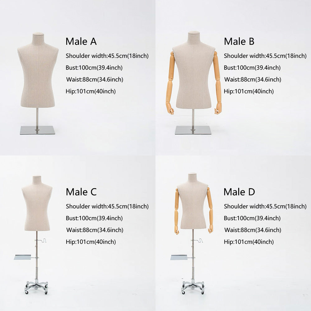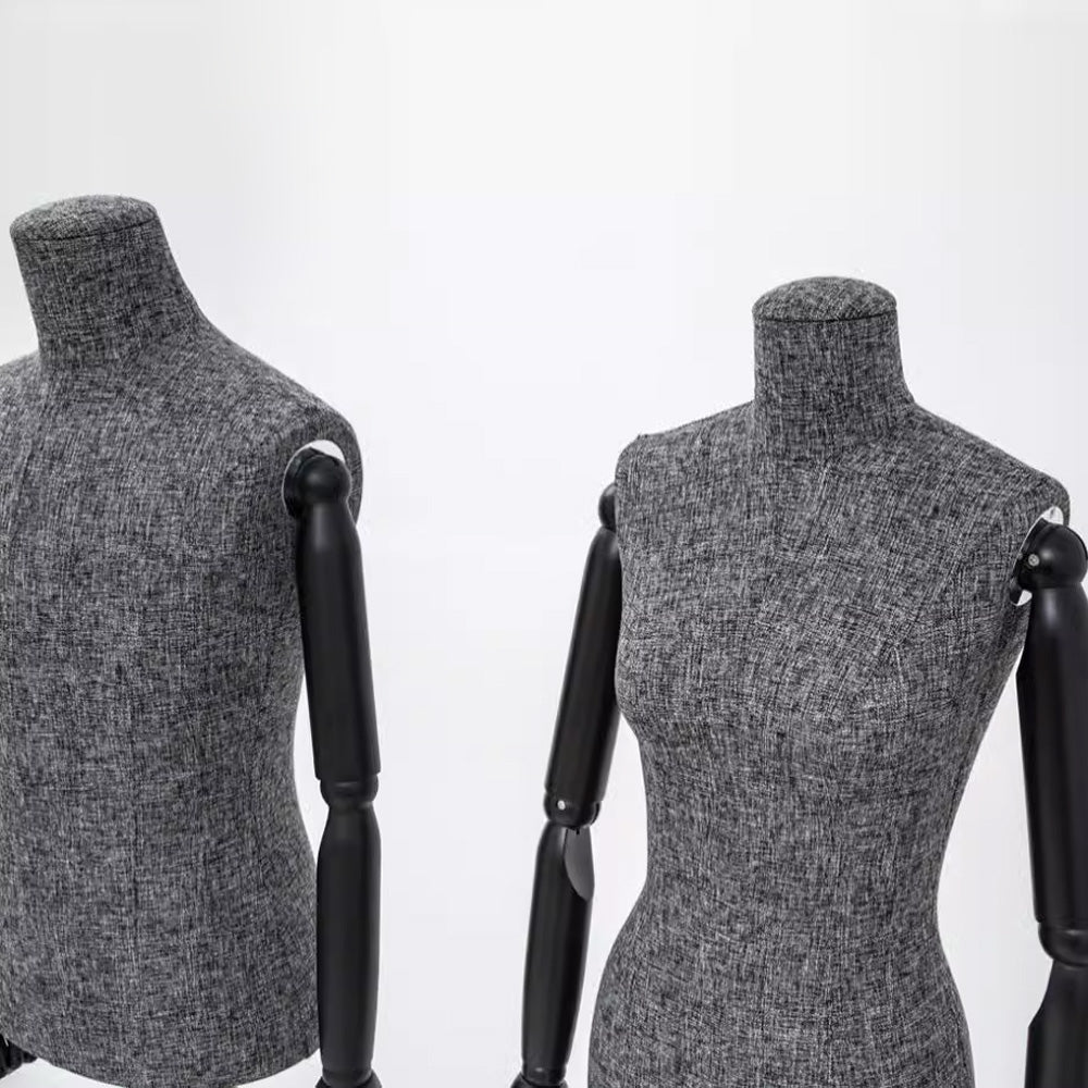 Showcase your fashion pieces with elegance and versatility using the DE-LIANG Female/Male Headless Mannequin Torso. Crafted with a durable fiberglass core wrapped in premium gray linen fabric, this mannequin exudes a sleek, modern aesthetic. The removable wooden arms allow for dynamic styling, making it ideal for displaying suits, dresses, tops, and accessories. Its silver cross base provides stability, ensuring a professional and stylish presentation. Perfect for boutiques, fashion showrooms, or retail displays.