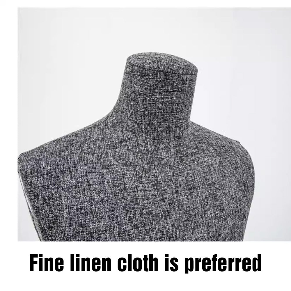 DE-LIANG Female/Male Headless Mannequins Torso With Removeable Wooden Arms,Linen Fabric Fiberglass Mannequins,Gray Dress Form Fabric Suit Pants Rack Display,Half Body Torso With Silver Cross Base