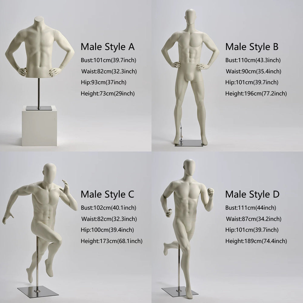 - Q: How difficult is the assembly?A: Assembly is quick and tool-free! Each mannequin features a professional plug-in system for the arms and torso, allowing you to set up or change garments in minutes.