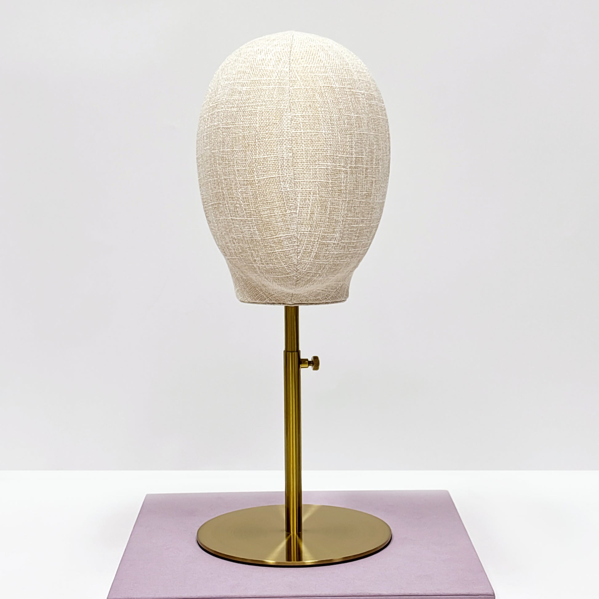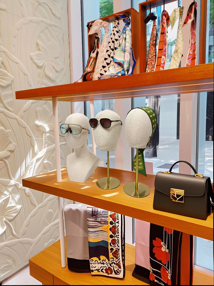Crafted with breathable bamboo linen fabric, this display stand combines eco-friendly durability with a luxe matte finish—perfect for showcasing female wigs, hats, and delicate jewelry without slipping or static.