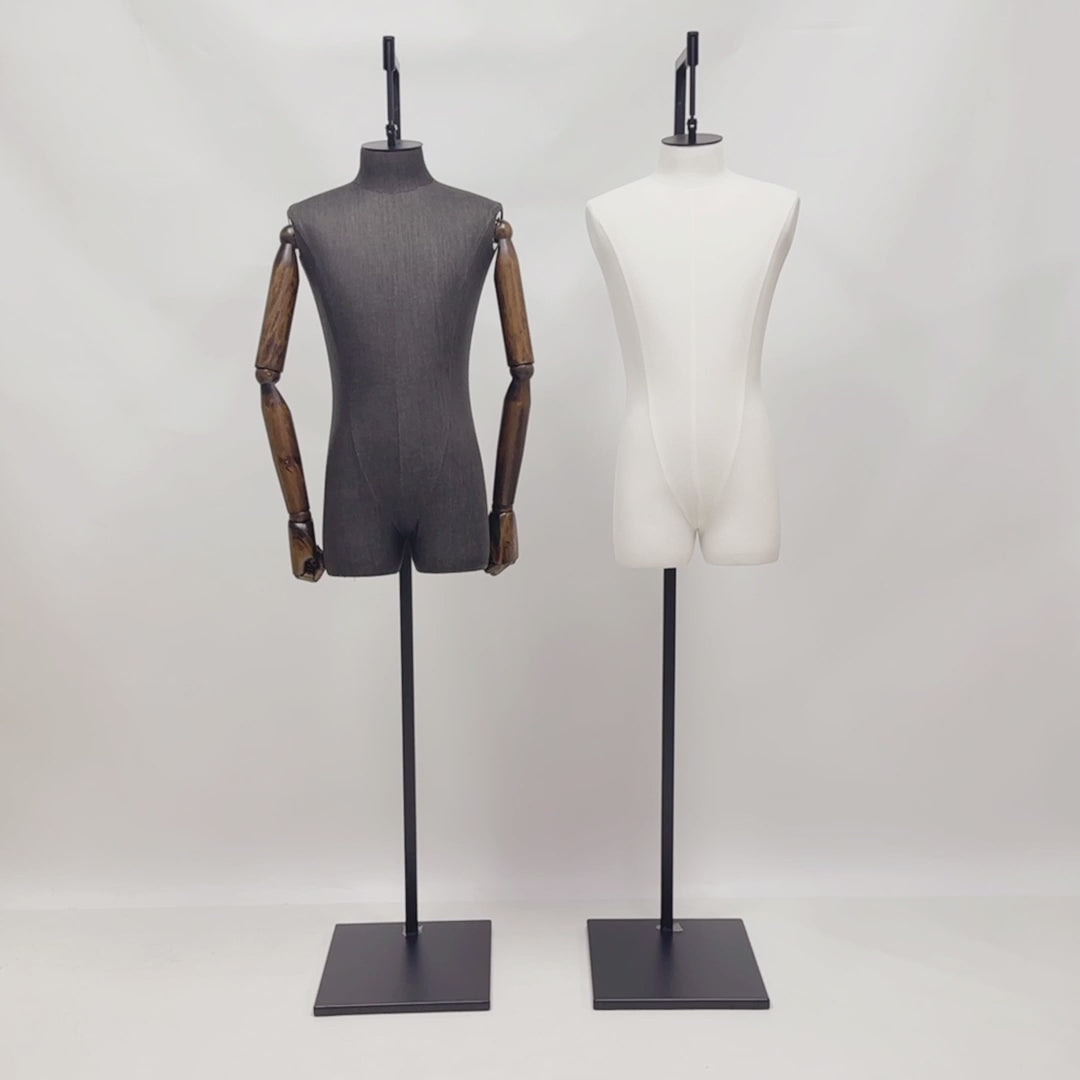 Este maniquí de medio cuerpo femenino / masculino con base de metal es nuestro nuevo producto muy de moda, tela de lino, atmósfera de alta calidad.