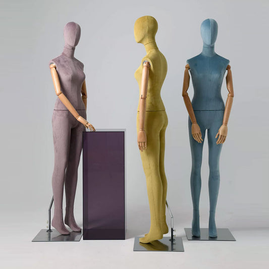 Prix habituel À partir de $889.00 USDPrix habituelPrix unitaire / parPrix promotionnel À partir de $889.00 USDMannequin de corps entier féminin sur support, modèle de robe d'affichage en tissu de velours coloré pour l'affichage de la boutique, torse de mannequin avec bras en bois DL0063