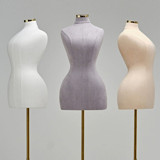 DE-LIANG Mannequin en daim pour femme avec tête en métal doré, élégant support de vêtements pour demi-corps féminin pour magasin de mode, mannequin de cintre pour vêtements DL0062