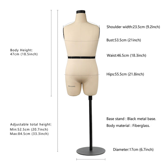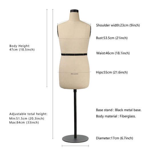 - Caractéristiques réglables : modifiez facilement les mesures du buste, de la taille et des hanches pour un ajustement parfait.