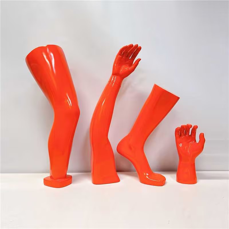 Mannequin homme de haute qualité, accessoires de protection pour les mains, les genoux, les jambes, les chevilles et les pieds, accessoires d'affichage de mannequin orange à utiliser pour la vente au détail, les chaussures et les chaussettes