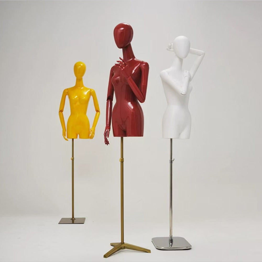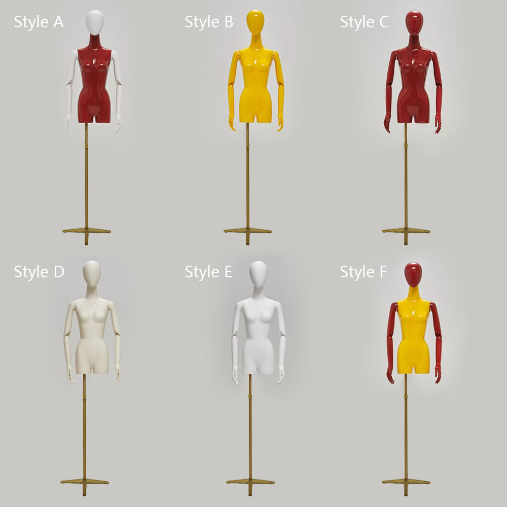 Mannequin de vitrine en velours à demi-corps féminin DE-LIANG, buste féminin avec bras en bois, mannequin de vitrine DL0040