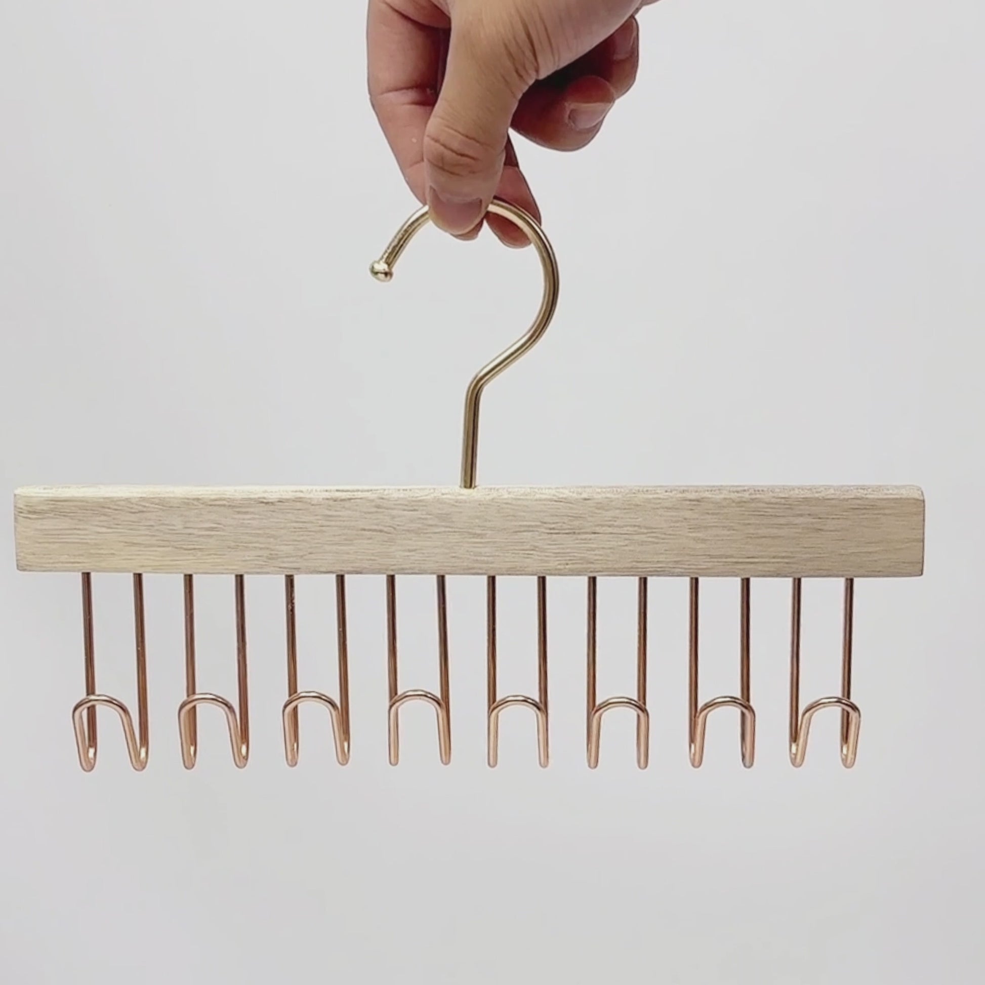 Features 8 gold hooks — ideal for ties, scarves, lingerie, and belts