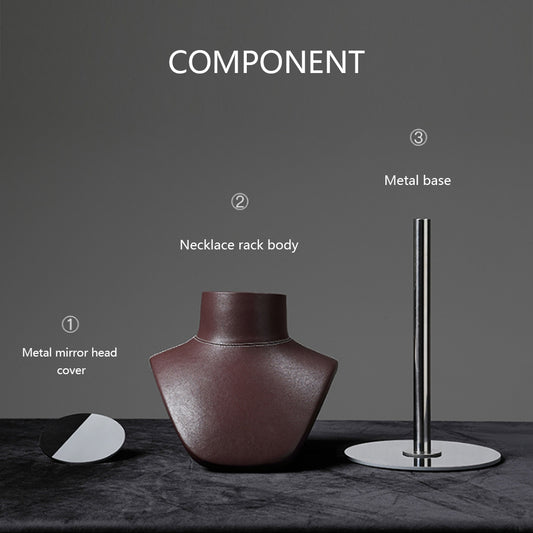 Luxury Leather Neck Bust Form, PU Leather Fabric Jewelry Collar Holder, Bow Tie/ Craft Display Rack,Chest Model Torso for Necklace Storage