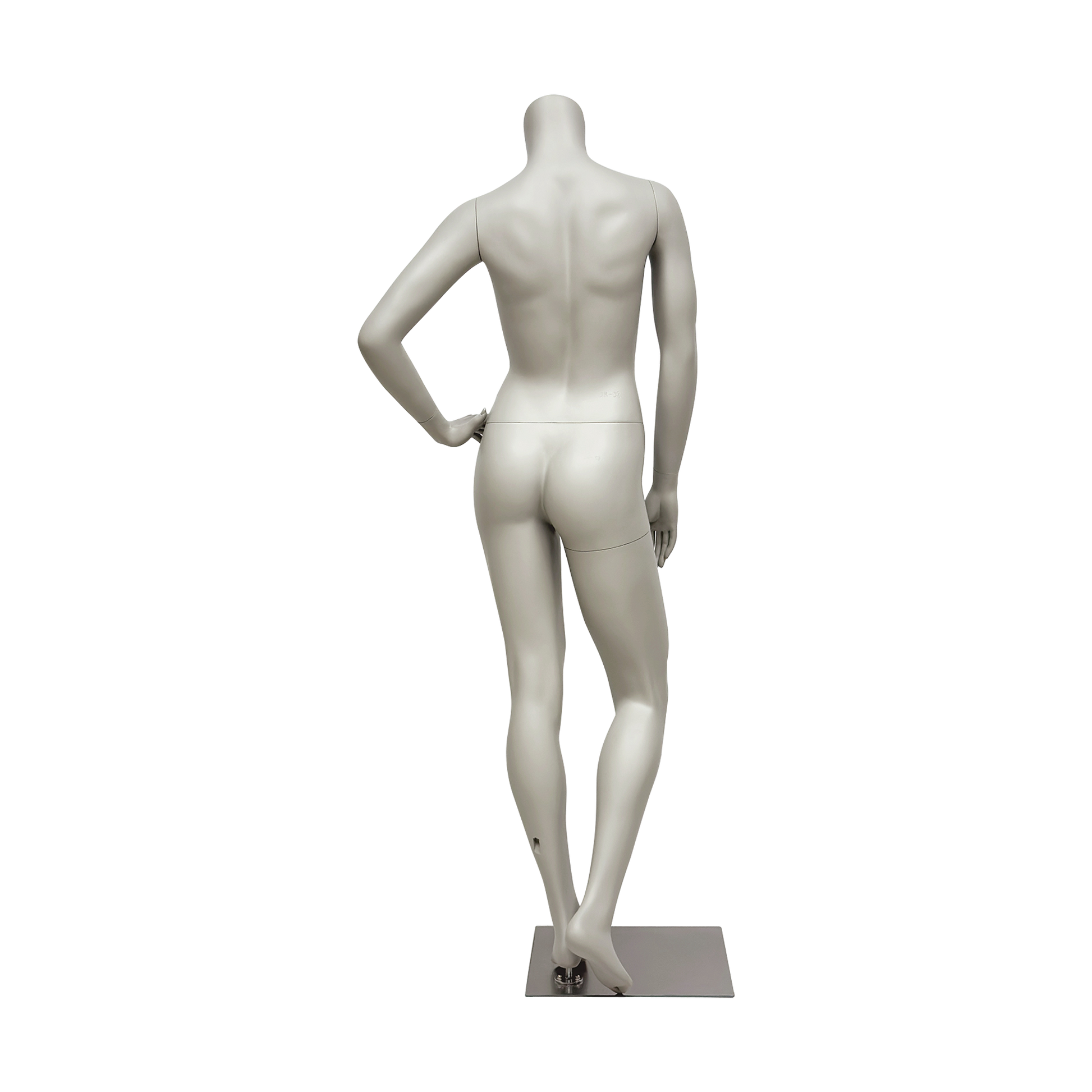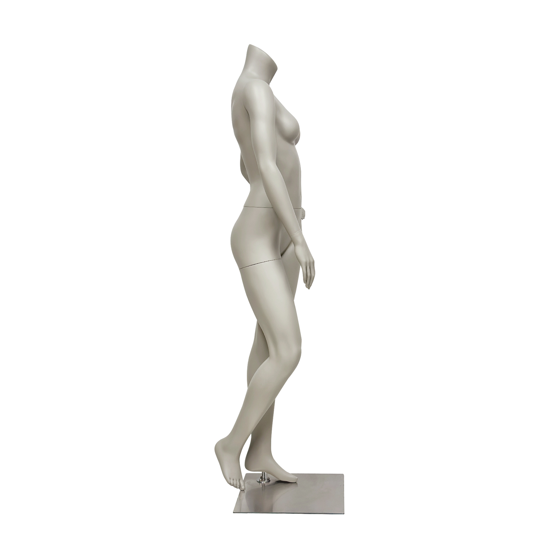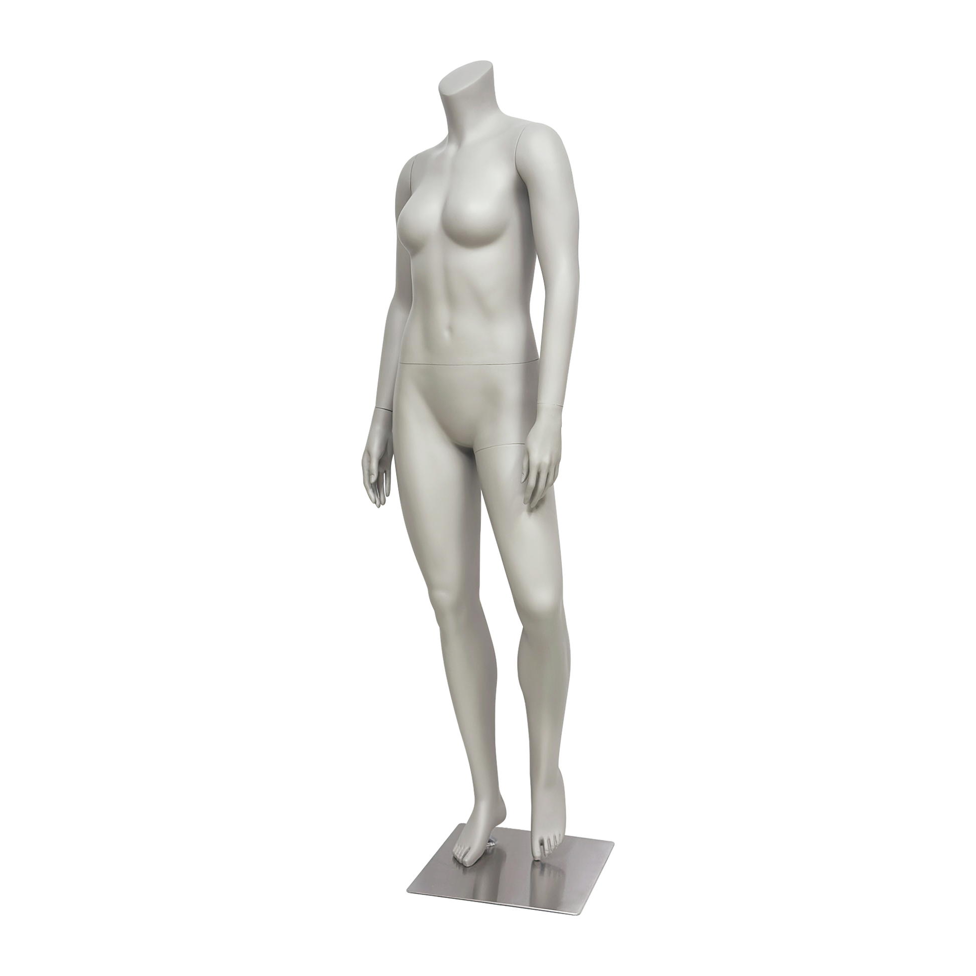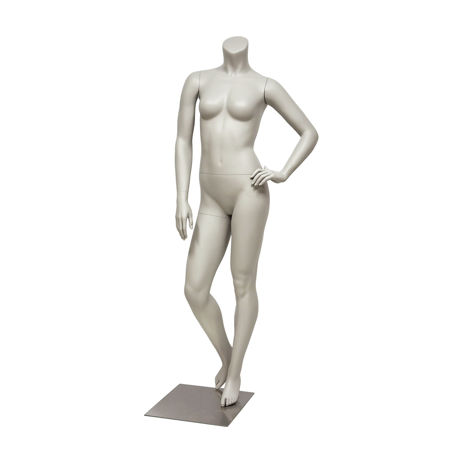 Professional headless female mannequin full body display form perfect for boutique clothing stores, retail shops, fashion showrooms, and window displays - showcase dresses, activewear, casual wear, and formal attire with this versatile matte gray fiberglass dress form featuring detachable arms and legs for easy dressing and transportation.