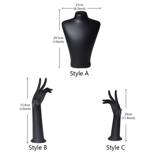 DE-LIANG Black Jewelry Display Set – Bust Display Stand & Jewelry Holder Ring Display Hand for Necklaces, Rings, and Accessories, Perfect for Home, Store & Trade Show Displays