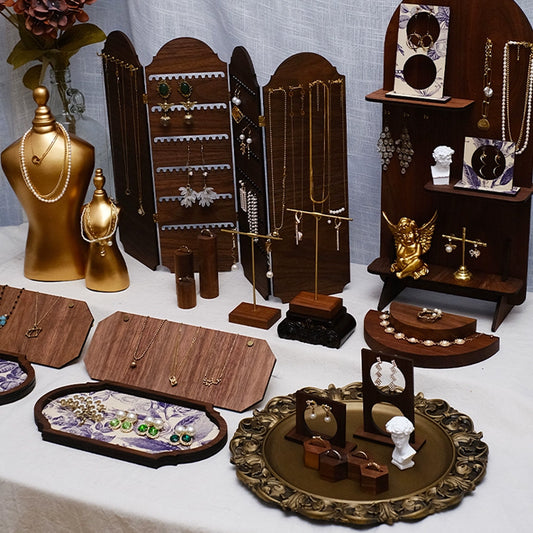 Walnut Screen Jewelry Dispaly Set,Brown Jewelry Stand, Ring Display, Earrings Holder,Storage Rack for Gift,Boutique, Necklaces Store Display DL2402