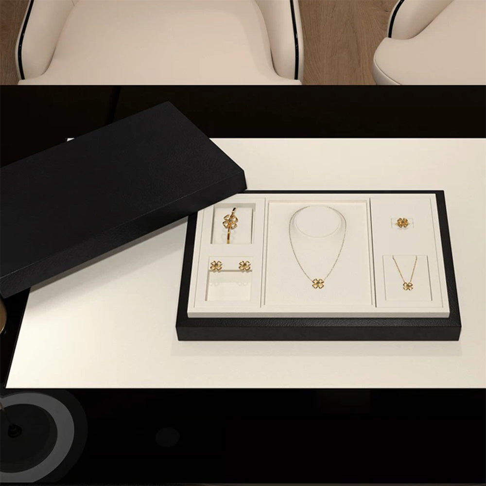 DE-LIANG Luxury Jewelry Display Box,Jewelry Organizer Traysl Organizer Display Storage Case for Rings Earring Necklace Bracelet,PU Leather & Microfiber DL2557