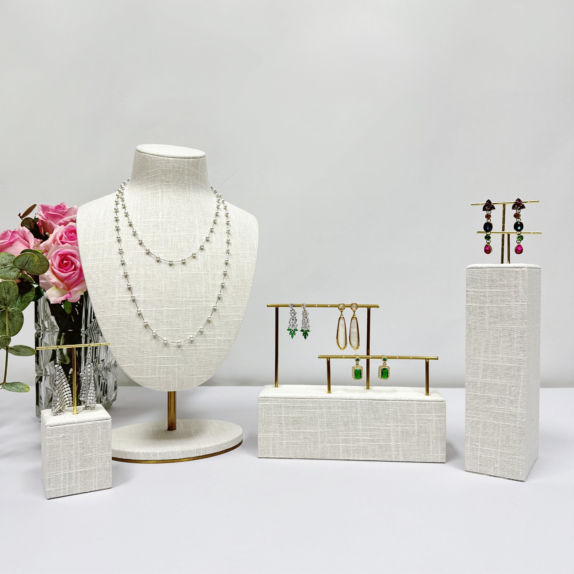 Whether you're a jewelry designer, boutique owner, or simply organizing your personal collection, this elegant display set brings both beauty and practicality to your space.