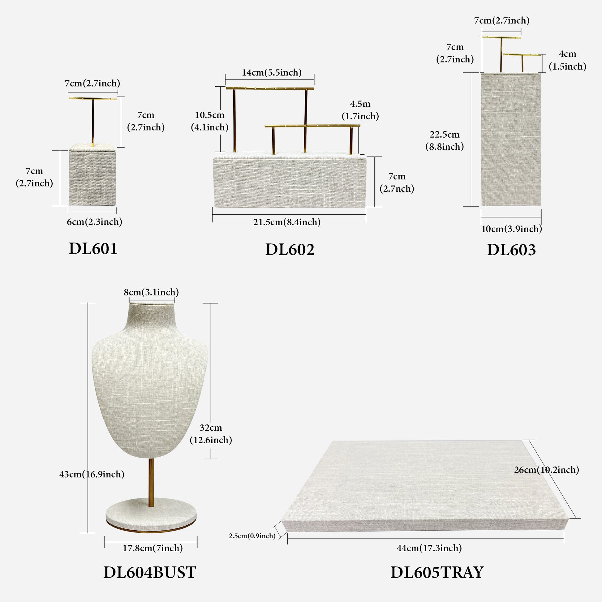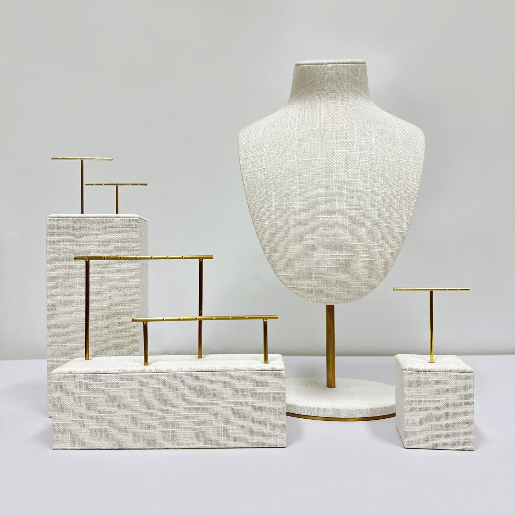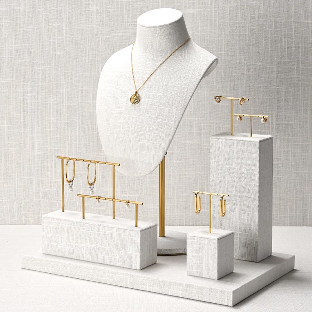 Elegant Linen Bust Form Display set, Necklace Bust, Jewelry Display, Linen Mannequin Display, Earrings display rack, Rings Tray display rack