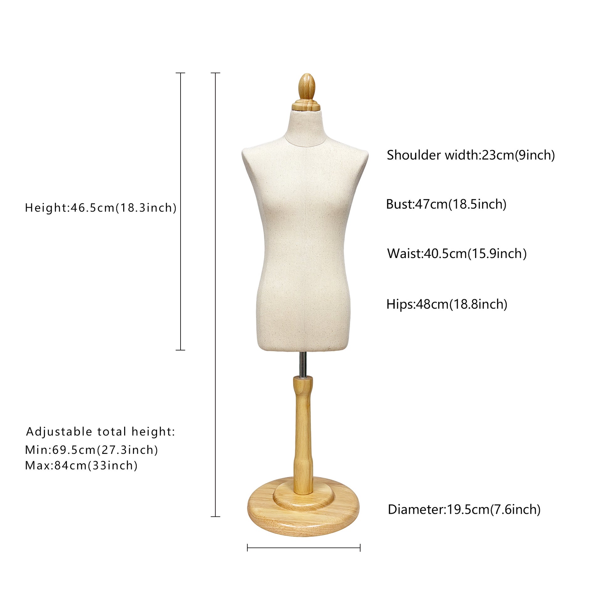 Busto:34cm, Vita29.5cm, Anca34cm, Altezza del corpo35cm, Base regolabile da 55-70cm