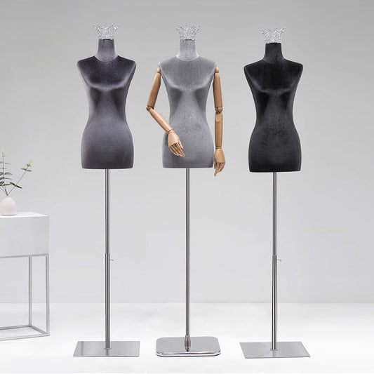 DE-LIANG Female Half Body Suede Velvet Display Mannequin,Woman Torso Dress Form with Wooden Arms ,High Quality Mannequin Torso for Clothing Store,Window Display