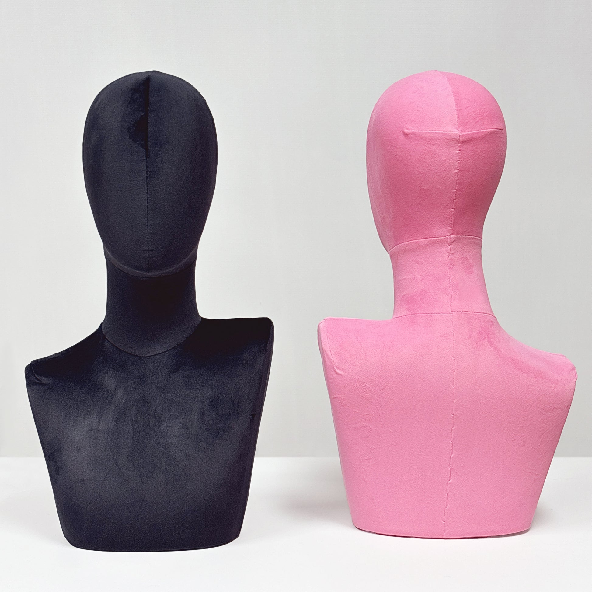 DE-LIANG Suede Mannequin Head Torso Display Stand,Soft Pinnable Foam Wig Head for Hats, Wigs, Jewelry,Accessories | Boutique Window Display Prop | Black / Pink