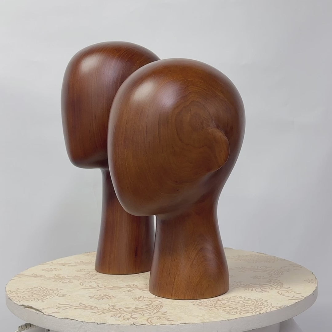 New Vintage Brown Solid Wooden Mannequin Head,Dress Form With Ear, Hat Wig Display,Wood Head Mannequin for Sale,, 32/37CM