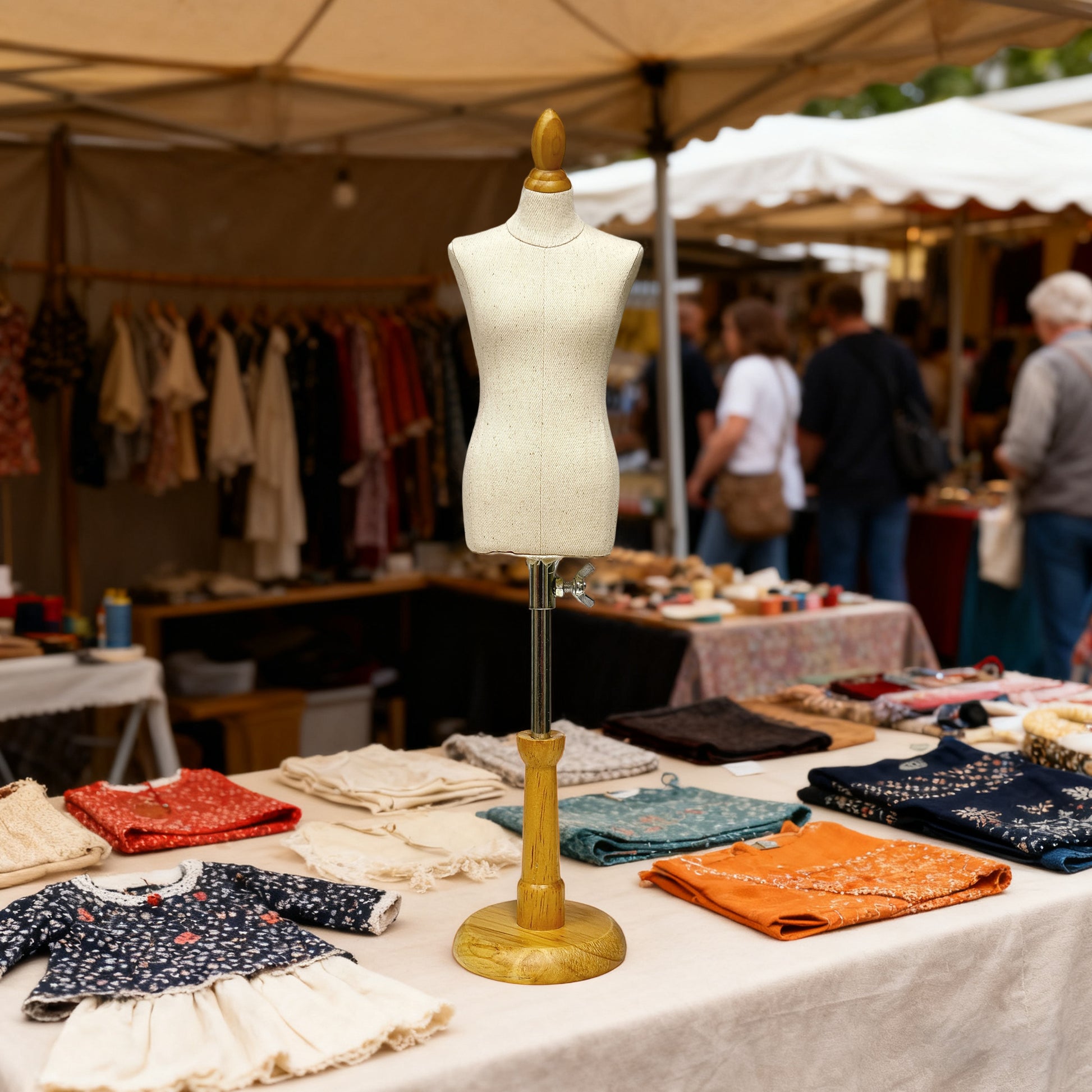 This mini beige dress form is not only a practical sewing aid but also a beautiful decorative piece for any creative workspace!