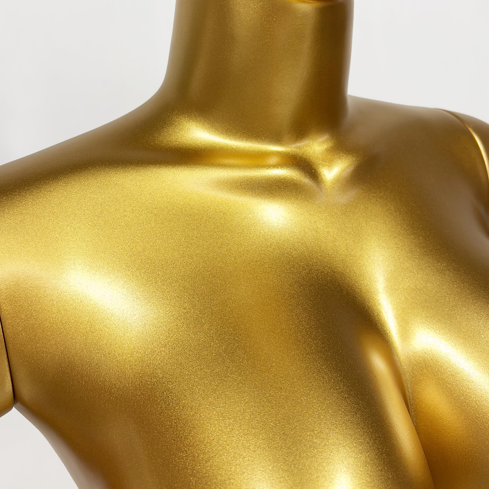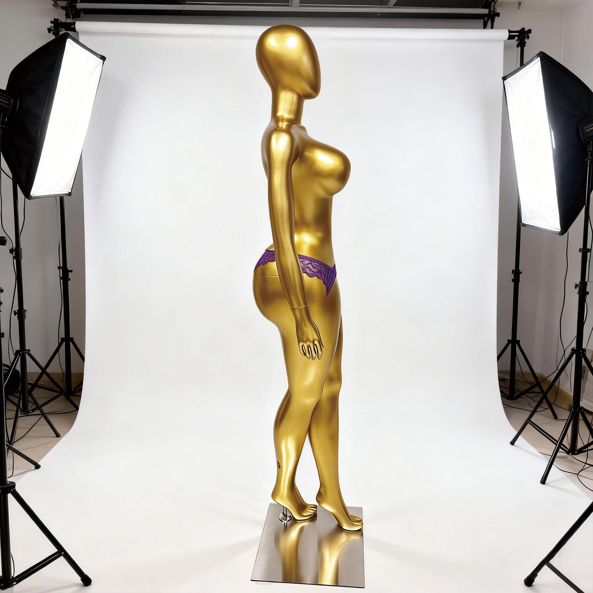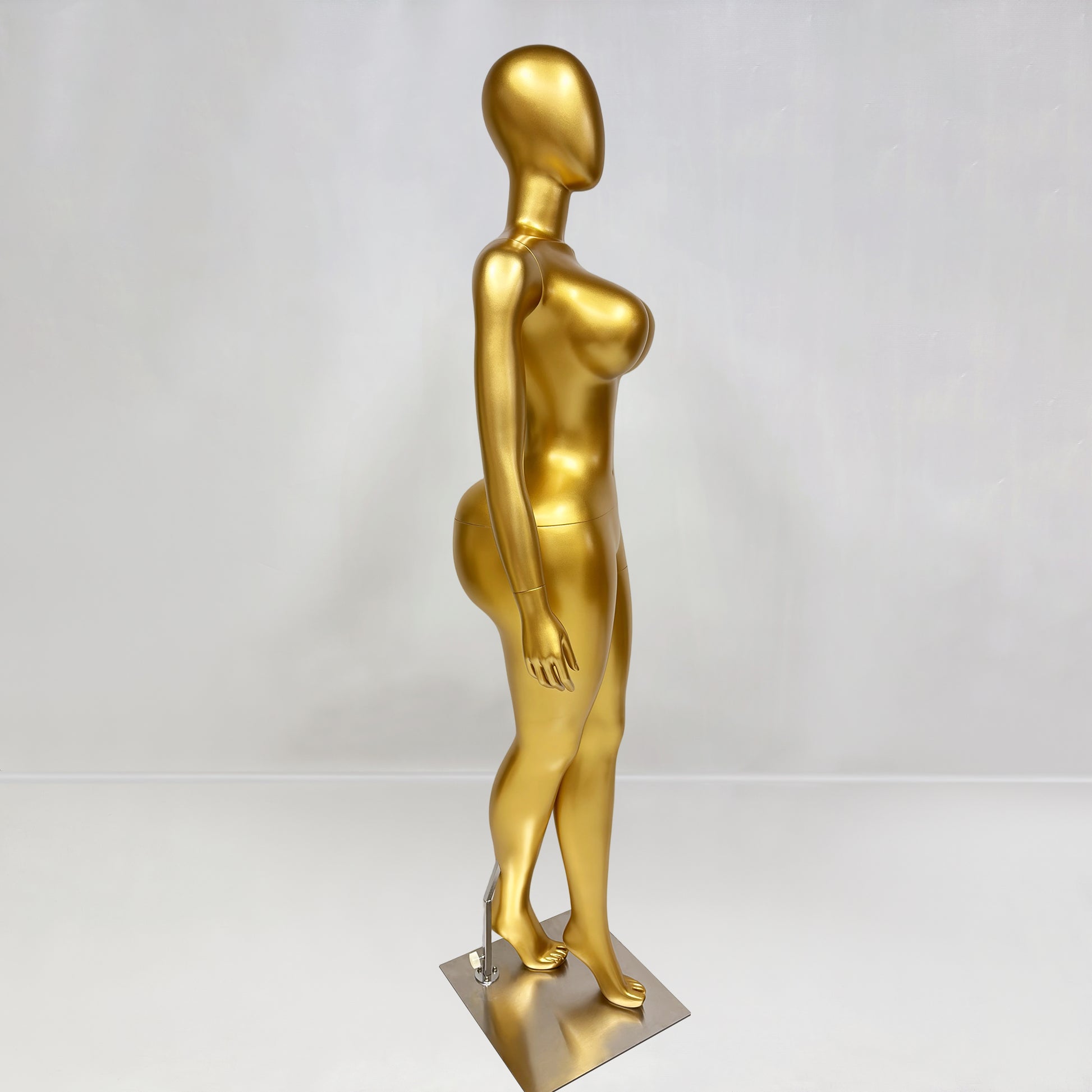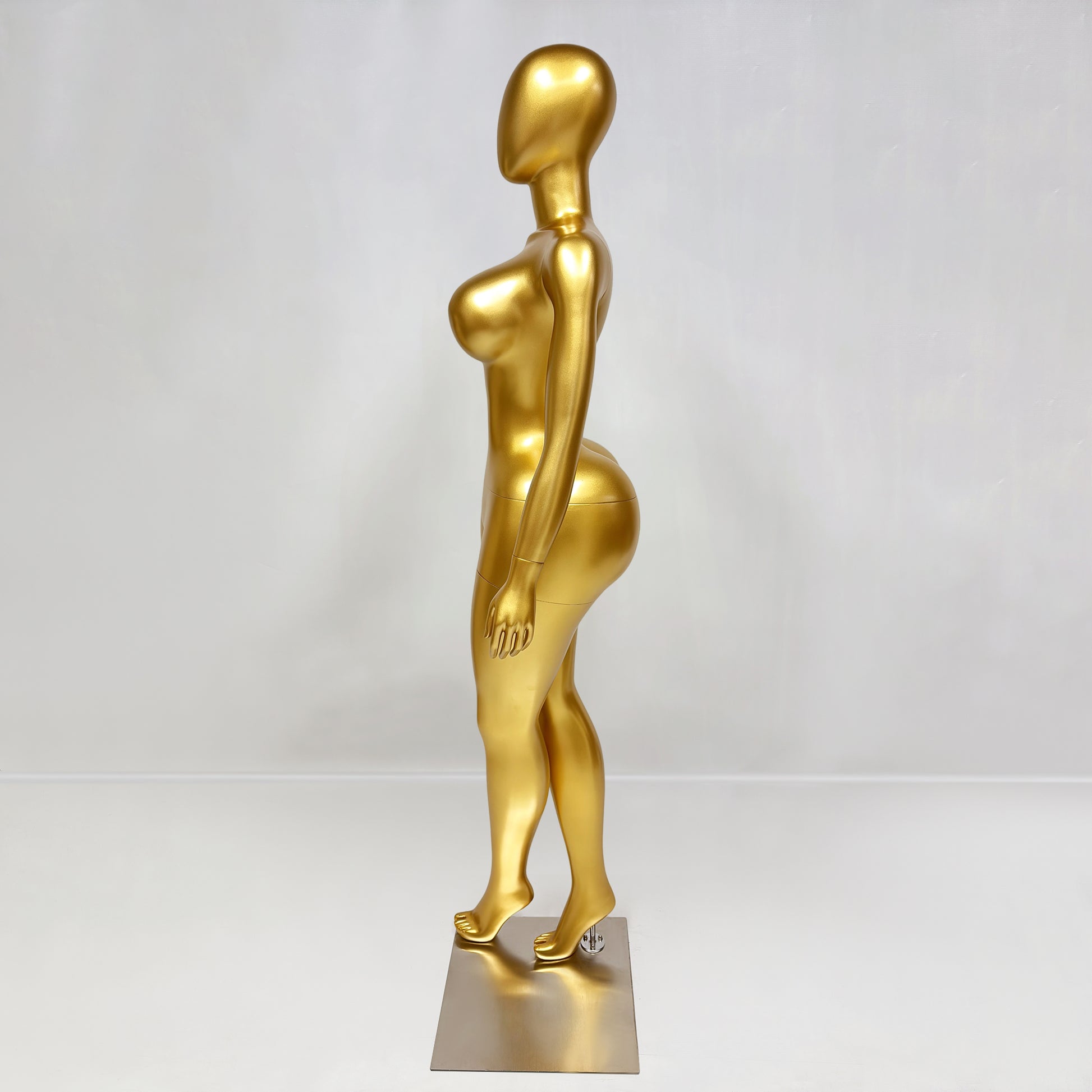 Elevate your brand with our Luxury Gold Female Mannequin. Specifically sculpted with an exaggerated hourglass figure (98cm bust and 58cm waist), this fiberglass model is the ultimate choice for showcasing couture, luxury lingerie, and high-end evening wear with maximum visual impact.