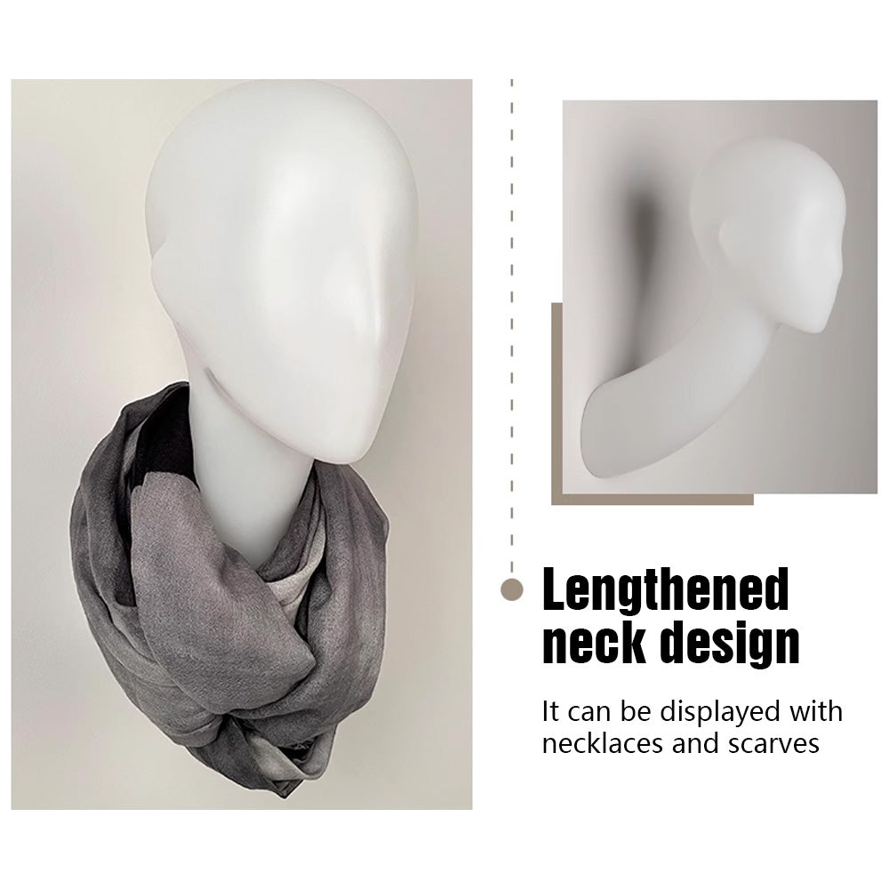 This wall-mounted white head mannequin, available in durable plastic or fiberglass materials, but this listing we sold plastic first is a versatile and space-saving display solution.