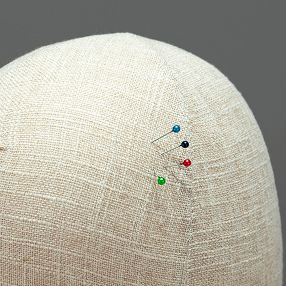 The entire fabric mannequin head surface is fully pinnable, allowing stylists to securely attach lace fronts, veils, or styling pins while maintaining a flawless presentation.
