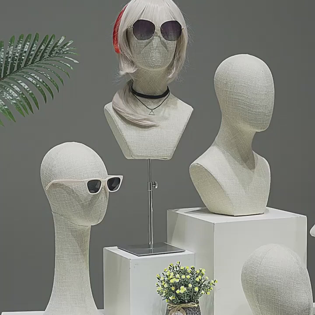Crafted with breathable bamboo linen fabric, this display stand combines eco-friendly durability with a luxe matte finish—perfect for showcasing female wigs, hats, and delicate jewelry without slipping or static.