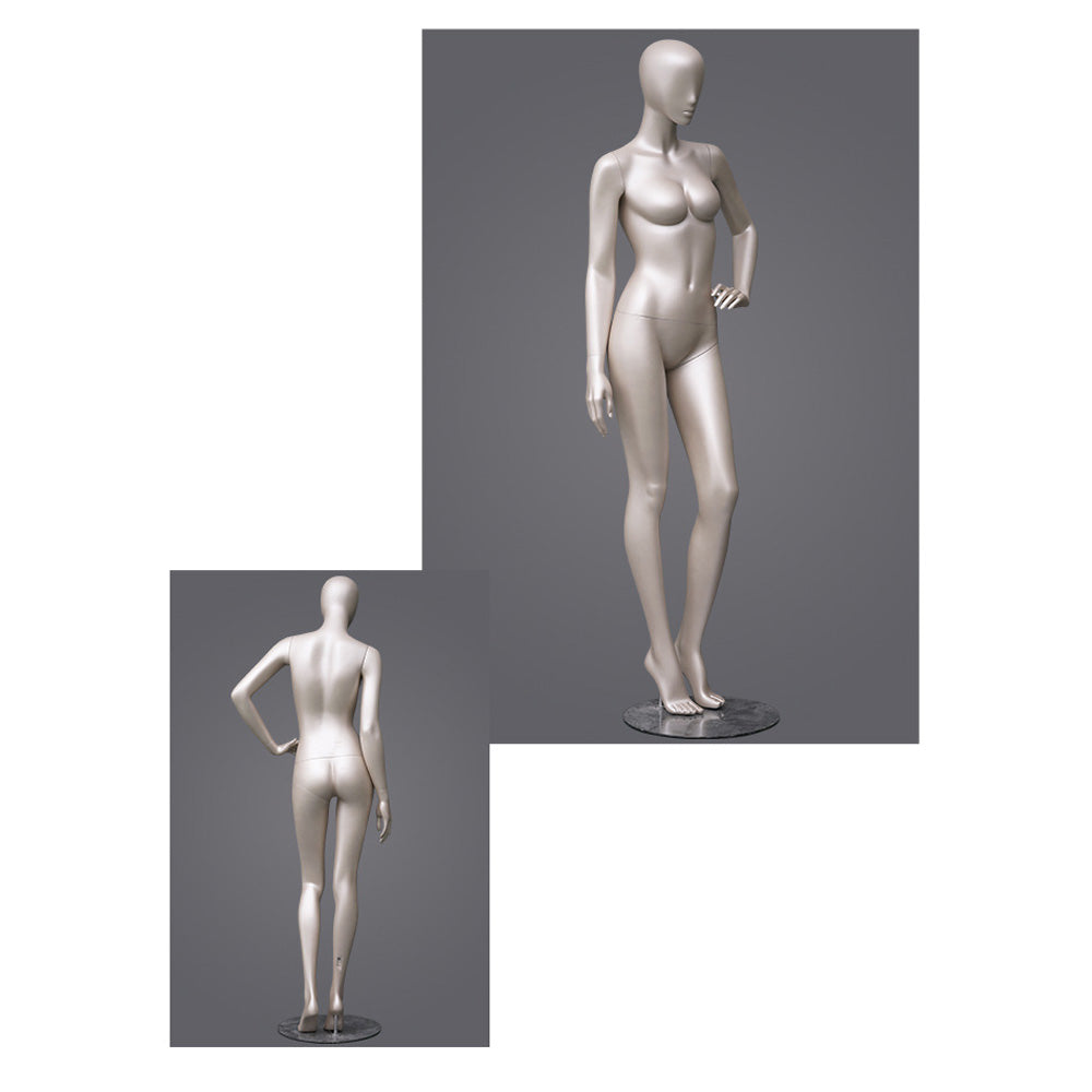 Featuring smooth curves, realistic proportions, and a stunning metallic finish, this mannequin set perfectly showcases women’s clothing, dresses, lingerie, swimwear, and accessories.