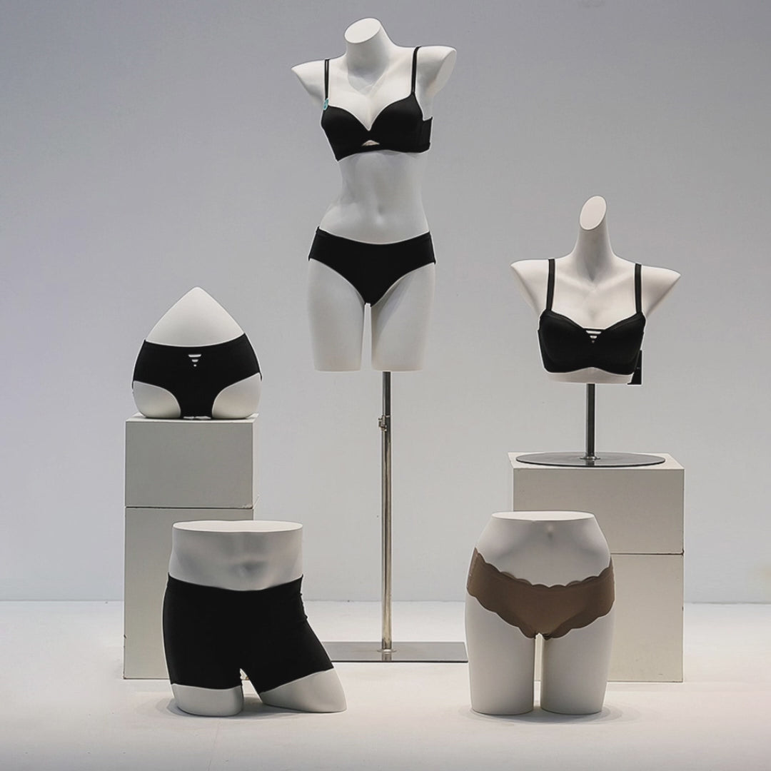 Premium female/male lingerie display forms in elegant white and luxurious skin finishes. Our versatile collection includes full body mannequins, bust forms, torso displays, and hip forms - perfect for showcasing bras, panties, lingerie sets, and intimate apparel in boutiques, retail stores, and e-commerce photography.