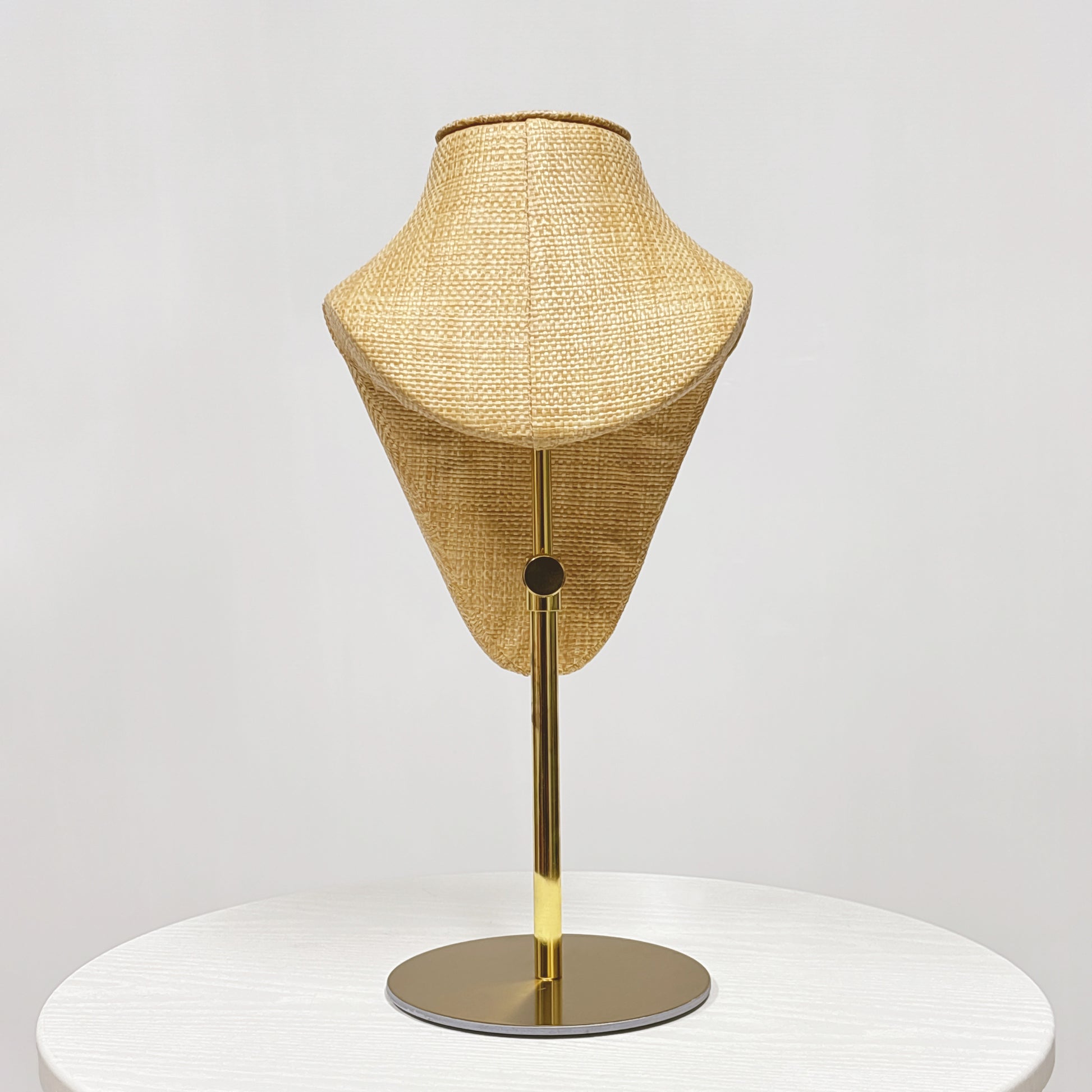 DE-LIANG Woven Rattan Necklace Bust & Hat Display Stand – For Jewelry and Hat Display