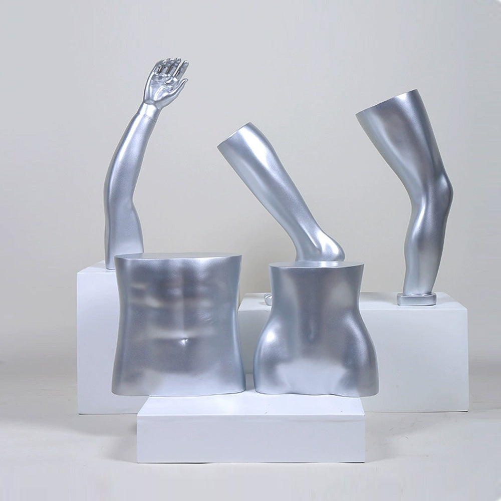 DE-LIANG Fiberglass Fashion Male Sport Mannequin Torso,Elbow,Arms,Waist And Hip Protector Props,Silver Mannequin Props for Athletic Brace Display