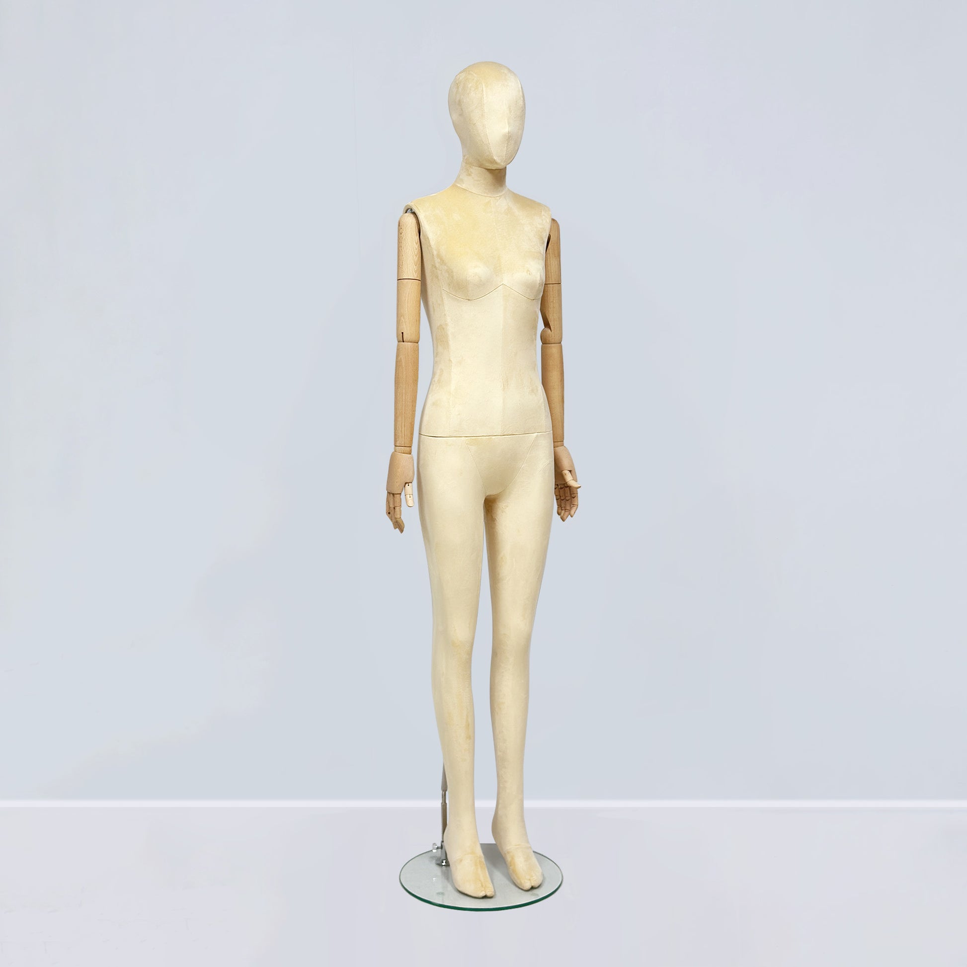 Luxury Matte Flannel Female Mannequin | Articulated Wooden Arms | DE-LIANG