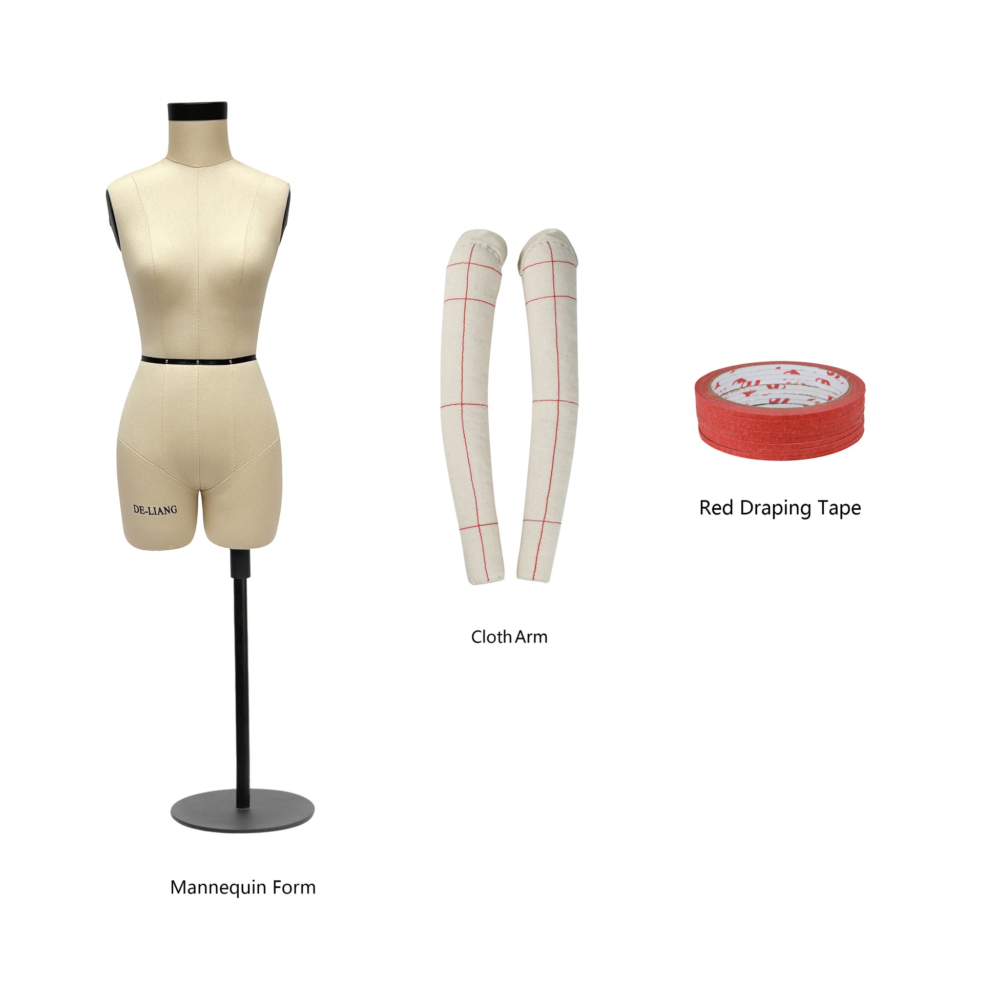DE-LIANG Miniature Half Body Dress Form with Arms/ Beige Female Mannequin(size 6-8-10-12-14-16)