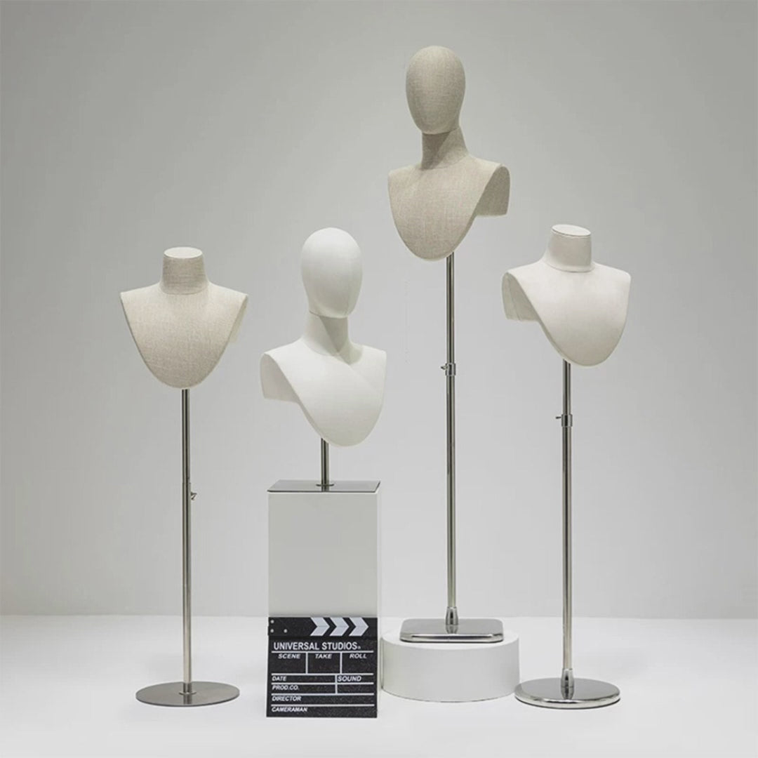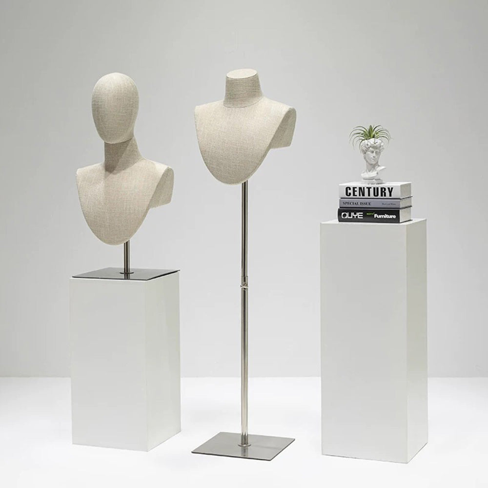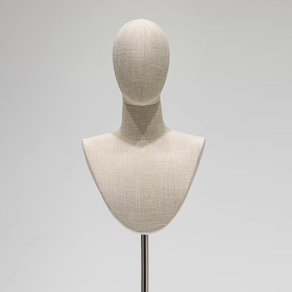 Elevate your accessory display with this luxury bamboo linen jewelry display bust. Featuring a minimalist blend of natural materials and modern craftsmanship, it's perfect for showcasing necklaces, scarves, and pendants on tabletops or floor displays in boutiques or exhibitions.