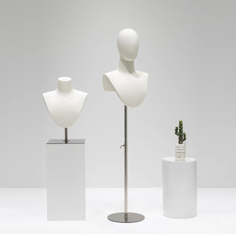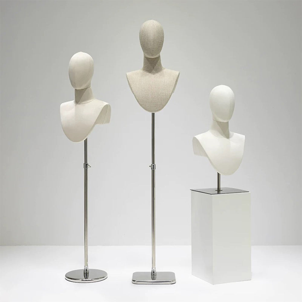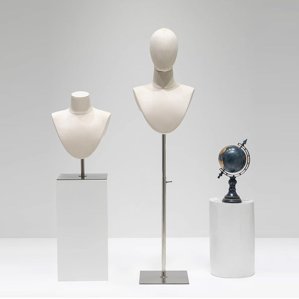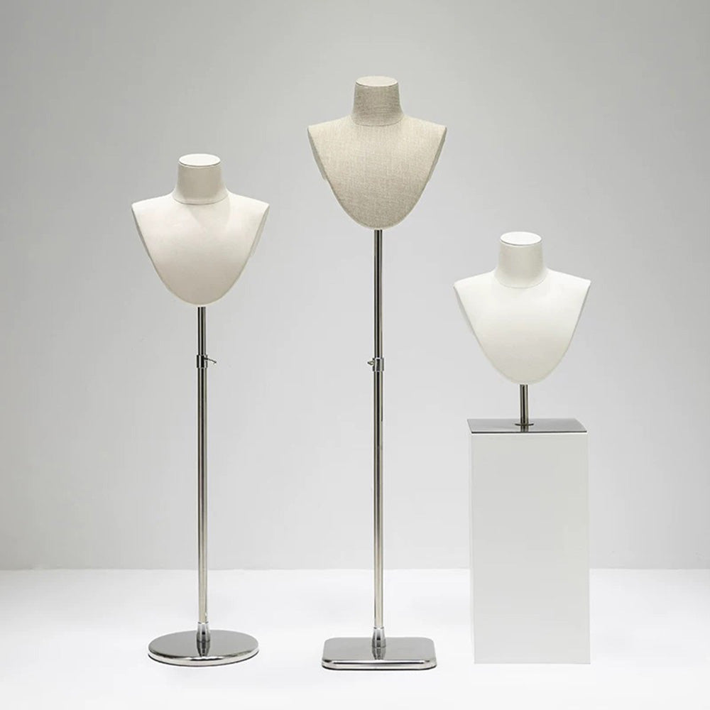 Elevate your accessory display with this luxury bamboo linen jewelry display bust. Featuring a minimalist blend of natural materials and modern craftsmanship, it's perfect for showcasing necklaces, scarves, and pendants on tabletops or floor displays in boutiques or exhibitions.