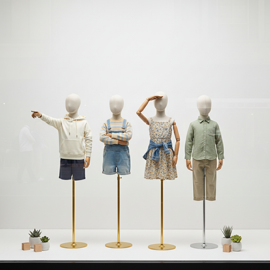 Perfect for children's boutiques, retail stores, window displays, and fashion exhibitions. Our child mannequins feature high-quality materials and realistic proportions for showcasing kids' clothing, baby apparel, and accessories.