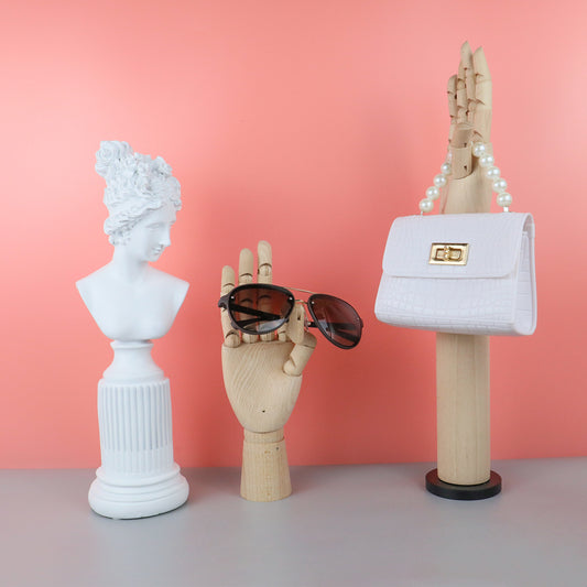 Wooden Hand Mannequin,Multifunction Female Hand for bag jewelry sunglasses necklace hat Wig display, Raw Beech Wood Color with/without Base DL2420
