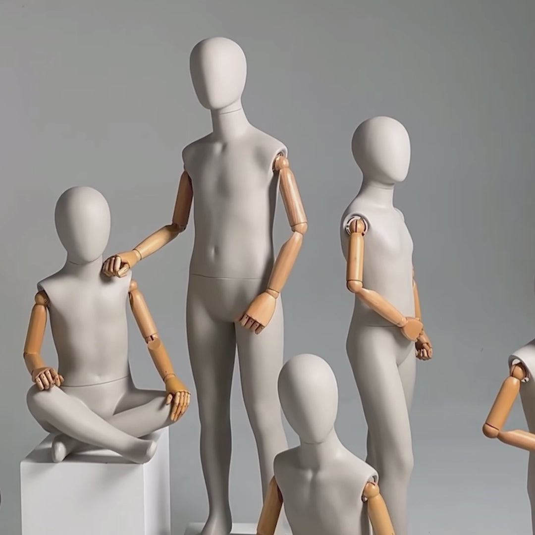 DE-LIANG Luxury Child Mannequin with Flexible Wooden Arms,Sandy Mud Color Child Stand/Sitting Full Body Dress Form Model for Clothes Display