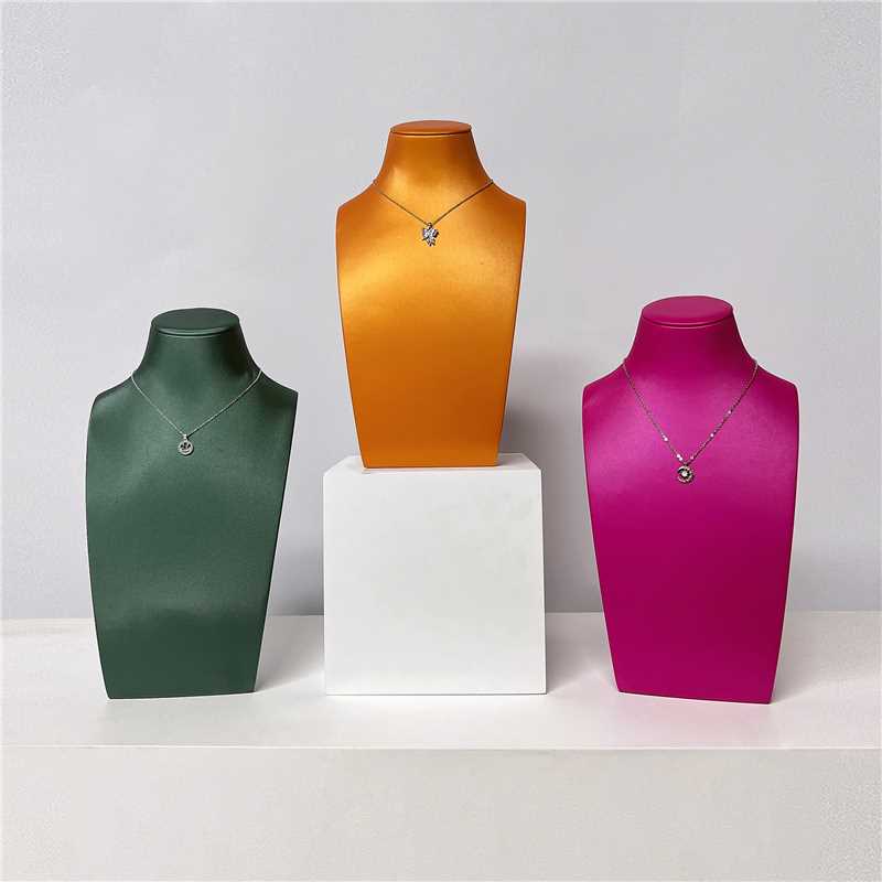 High-end Green Pink Orange Jewelry Display Bust ,Leather Pendant Chain Necklace Stand,Necklace Holder Bust For Jewelry Store Display Props
